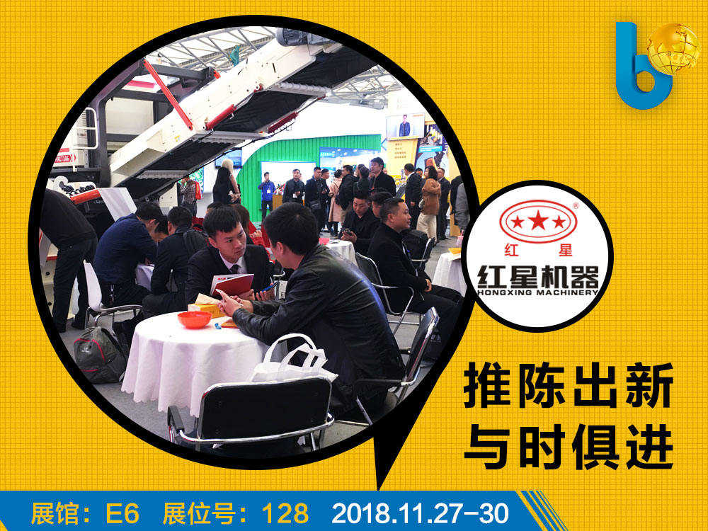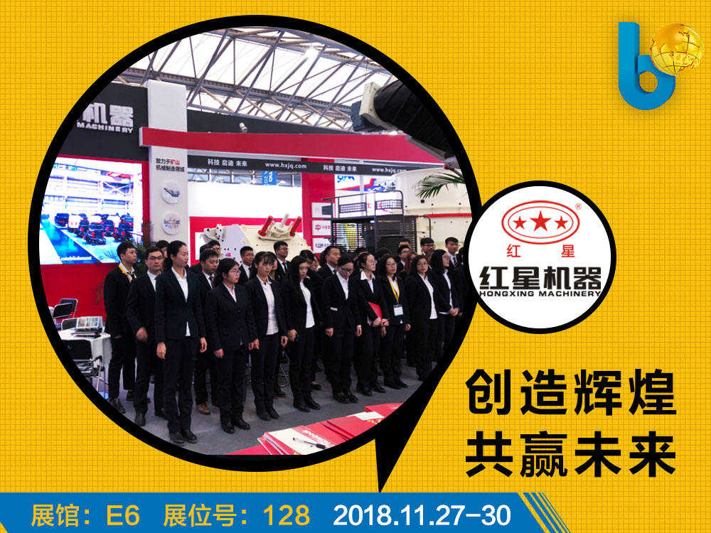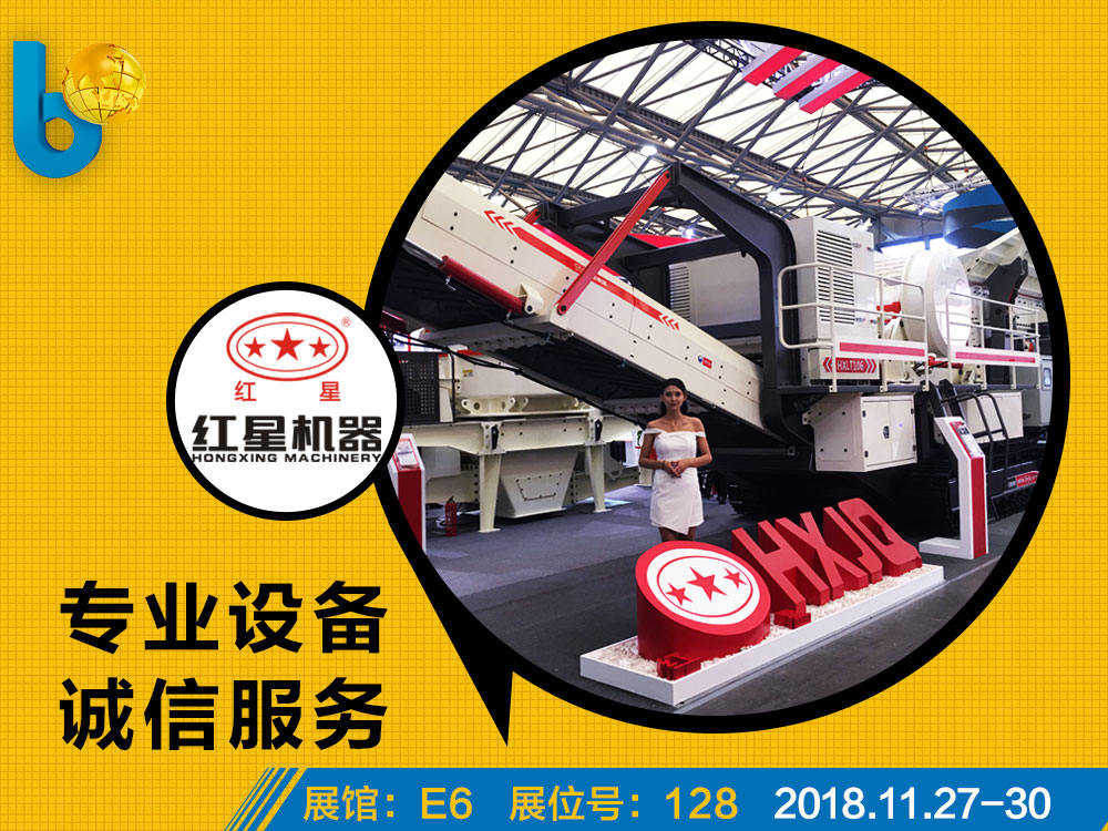 2018上海寶馬展在新國際博覽心盛大開幕。紅星機(jī)器以“科技、啟迪、未來”為主題,攜移動破碎、制砂、篩分、建筑垃圾處理等多款新型設(shè)備產(chǎn)品亮相展會。