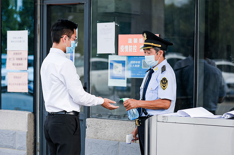 員工進(jìn)門(mén)手部消毒