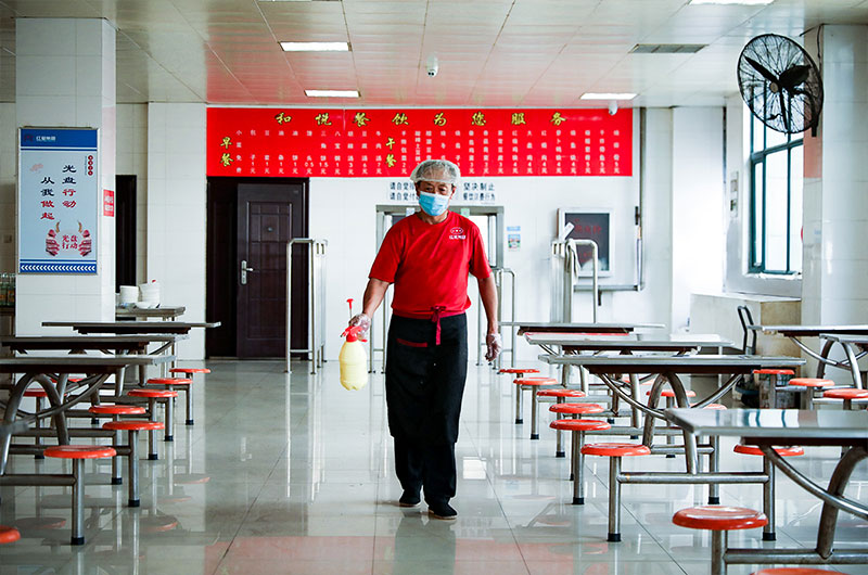 2.嚴(yán)格對(duì)各個(gè)場(chǎng)所的管理,辦公室、車間、食堂各場(chǎng)所定時(shí)打掃消毒、全時(shí)通風(fēng),避免人員聚集,工作全程佩戴口罩,員工分時(shí)分散用餐。