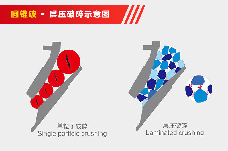 以目前在中細碎領(lǐng)域大顯身手的圓錐破來說,它的產(chǎn)品粒度較均勻、能源消耗少。但在它出場的初期并不是那么優(yōu)秀,在生產(chǎn)中存在很多缺點,如成品針片狀含量較多、粒形不夠好。后來,針對這些問題,業(yè)界提出了層壓破碎原理,并依此進行了工藝上的改進。