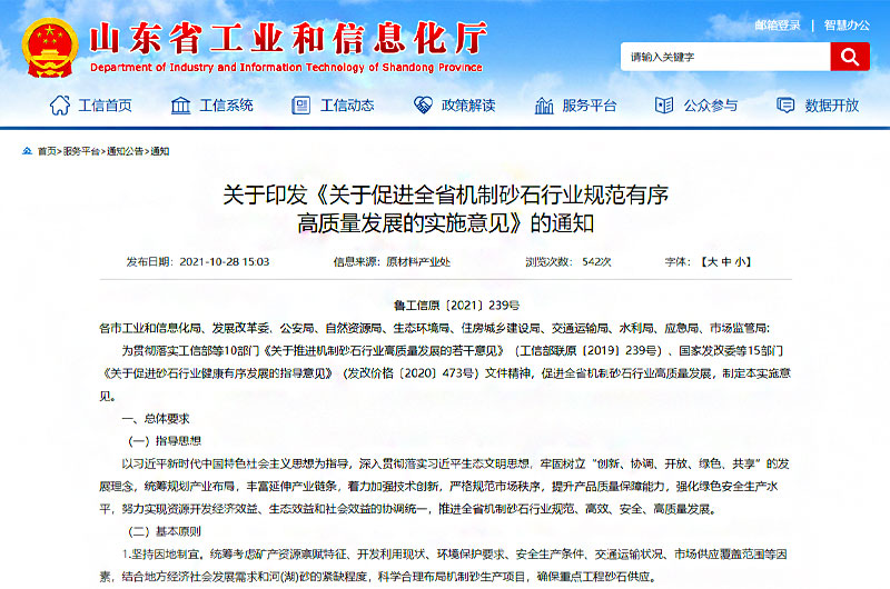 正所謂,兵馬未動糧草先行,在基礎(chǔ)建設(shè)領(lǐng)域,司空見慣的砂石就是先行的“糧草”。對此,山東省及早謀劃先行一步。山東是建材生產(chǎn)和消費的大省,建材工業(yè)體系門類眾多、配套完備。近日,山東省工信廳接連印發(fā)《山東省建材工業(yè)“十四五”發(fā)展規(guī)劃》、《關(guān)于促進全省機制砂石行業(yè)規(guī)范有序高質(zhì)量發(fā)展的實施意見》,明確了砂石骨料、石材、石膏及石膏制品、耐火材料、墻體材料、水泥、平板玻璃、建筑衛(wèi)生陶瓷、玻璃纖維及復(fù)合材料、防水材料等十個細分建材行業(yè)為“十四五”時期的發(fā)展重點。