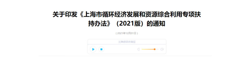 近日,上海市發(fā)改委、財(cái)政局印發(fā)《上海市循環(huán)經(jīng)濟(jì)發(fā)展和資源綜合利用專項(xiàng)扶持辦法》,根據(jù)《上海市生活垃圾管理?xiàng)l例》和國(guó)家“無廢城市”建設(shè)的最新要求,啟動(dòng)《上海市循環(huán)經(jīng)濟(jì)發(fā)展和資源綜合利用專項(xiàng)扶持辦法》新一輪修訂研究工作,在原基礎(chǔ)上對(duì)部分內(nèi)容作修改完善。朝著更加利好循環(huán)經(jīng)濟(jì)發(fā)展的方向努力,著重支持工業(yè)、城建、農(nóng)林和生活等領(lǐng)域廢棄物資源綜合利用,重點(diǎn)支持其中市場(chǎng)不能有效配置的資源,需要政府支持的廢棄物資源綜合利用。