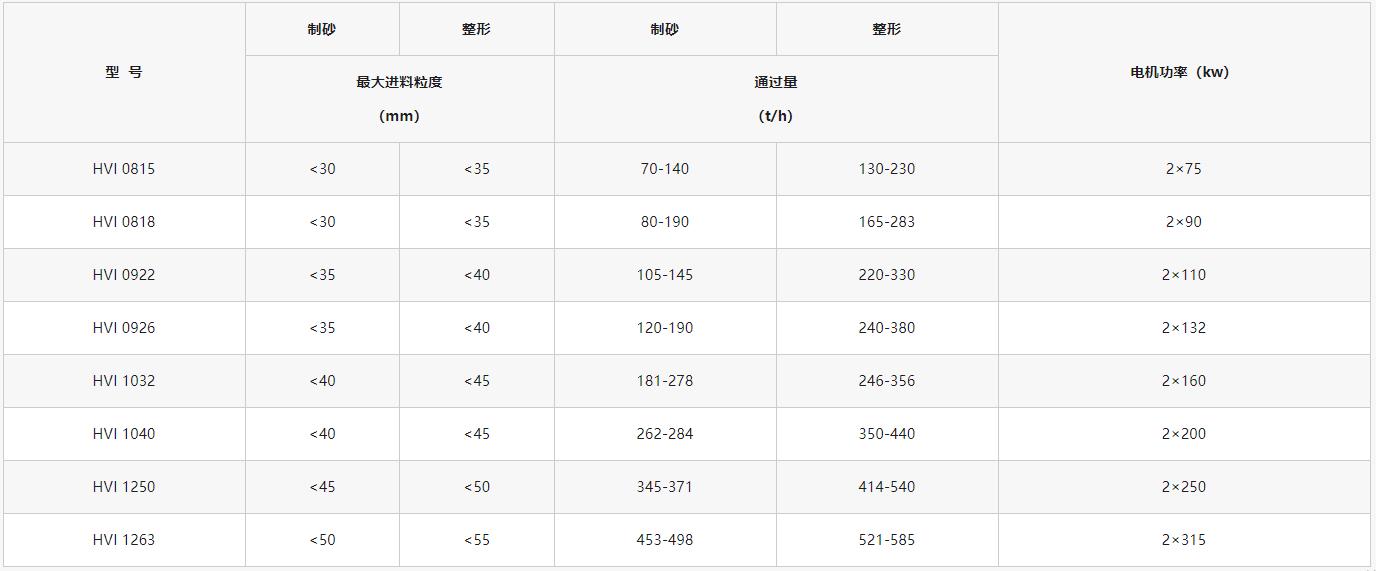 (HVI制砂機(jī)技術(shù)參數(shù)表)