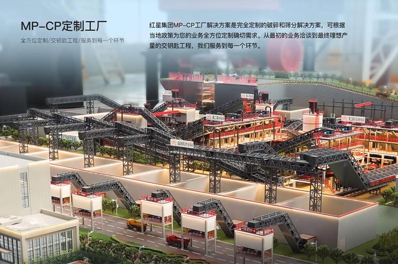 紅星集團(tuán)MP-CP工廠解決方案是完全定制的破碎和篩分解決方案,可根據(jù)當(dāng)?shù)卣邽槟臉I(yè)務(wù)全方位定制確切需求。從最初的業(yè)務(wù)洽談到最終理想產(chǎn)量的交鑰匙工程,我們服務(wù)到每一個(gè)環(huán)節(jié)。