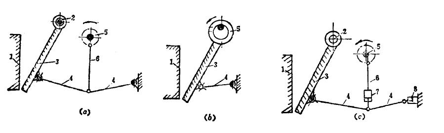 (a)—簡擺顎式破碎機;(b)—復擺顎式破碎機;(c)—液壓顎式破碎機
