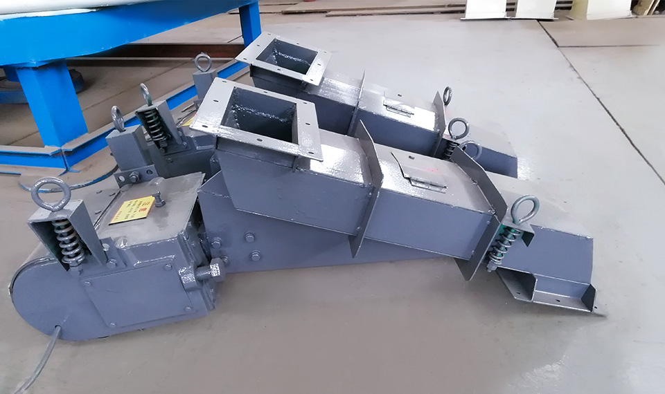 電磁振動給料機結(jié)構(gòu)上主要由料槽、電磁激振器、減振器組成,激振器又由電磁鐵(鐵芯和線圈)、銜鐵和裝在兩者之間的主振彈簧等構(gòu)成,是產(chǎn)生振動的激振源,激振器的工作可以通過一定的控制裝置進(jìn)行控制。